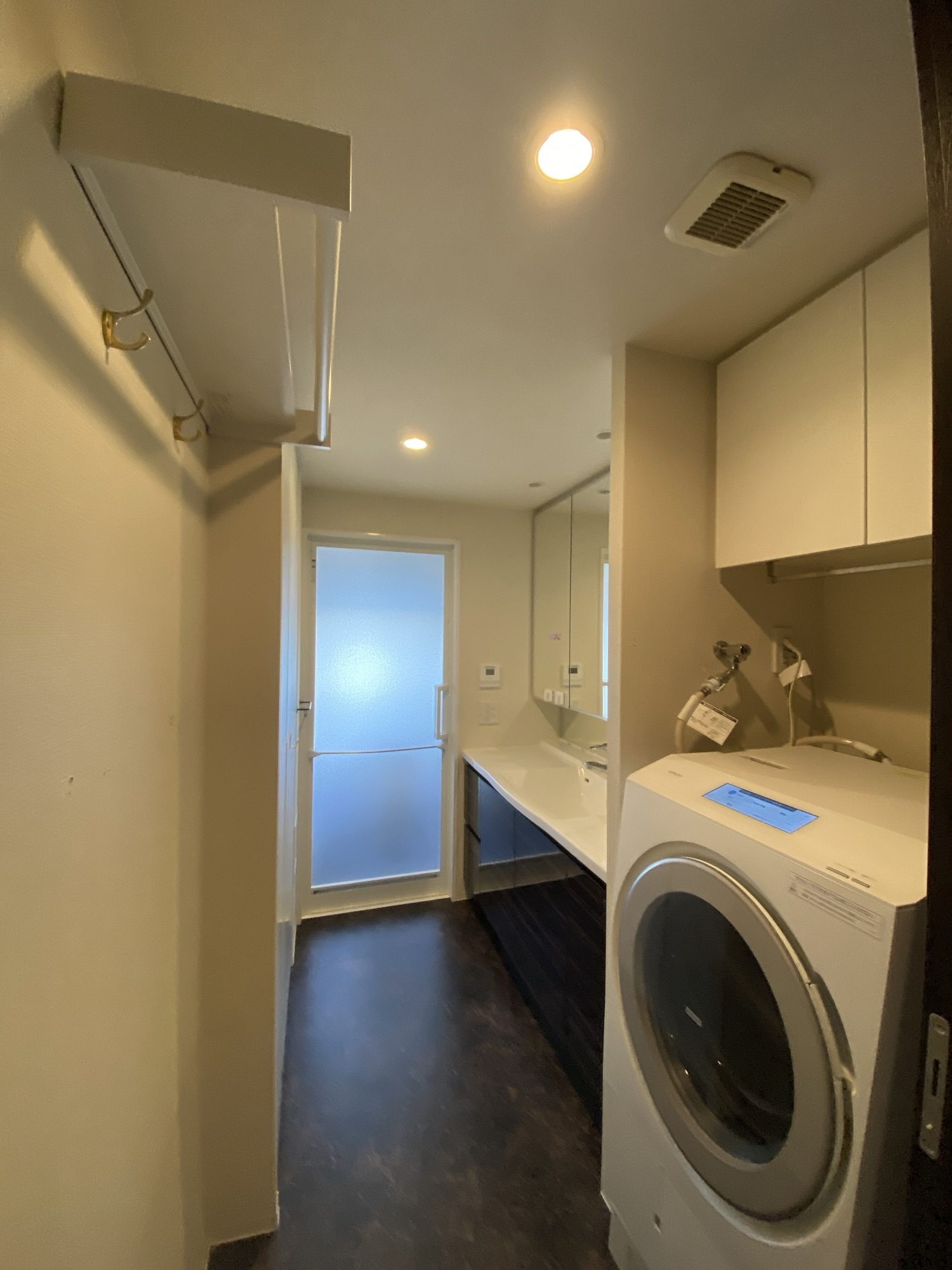 神戸市中央区、マンションの洗面脱衣室のクロス、クッションフロアの貼り替え工事です。
