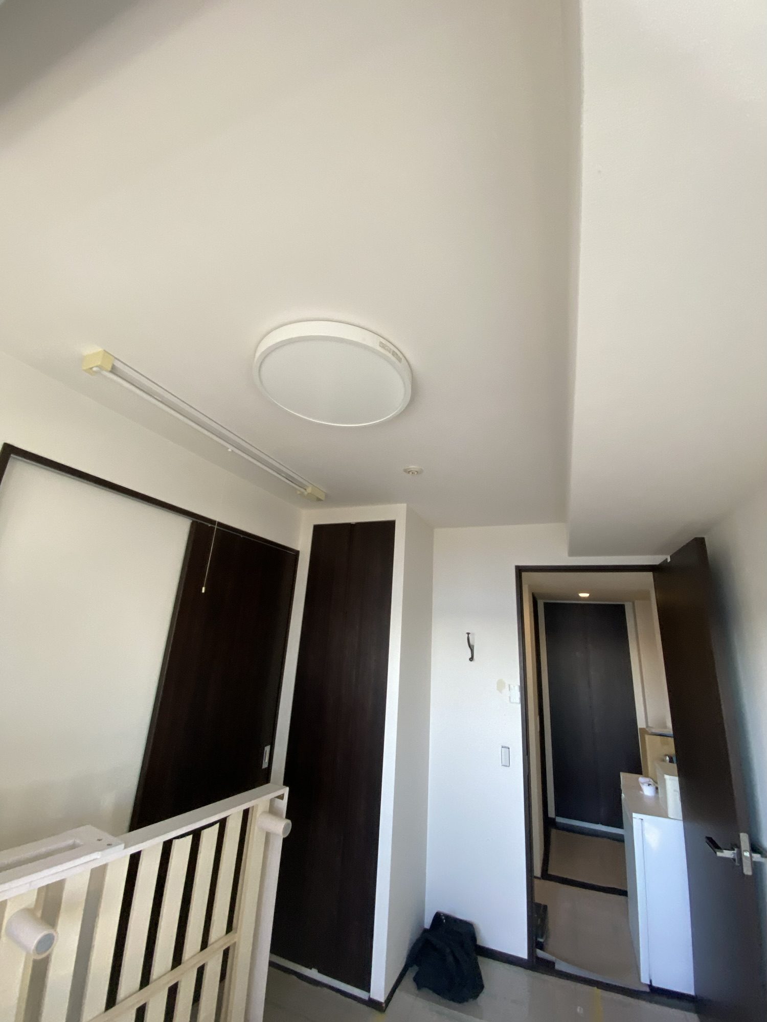 天井は木目柄、床は白。