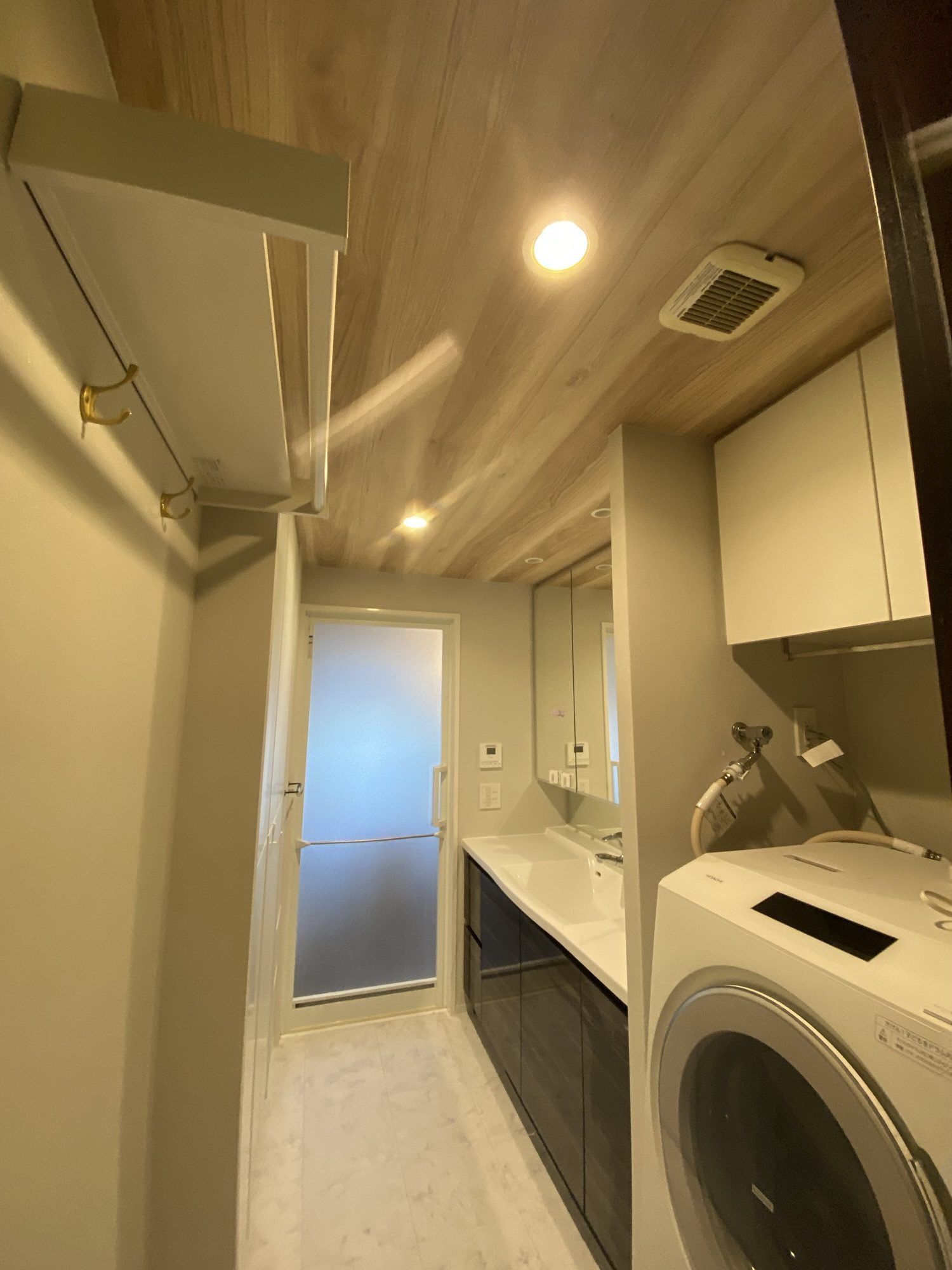 下がり天井も木目柄で仕上げました。